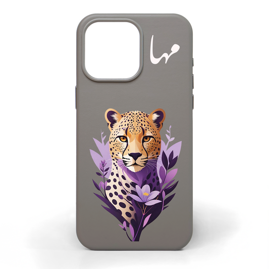 Leopard in Petals Hand-Painted Leather Phone Case