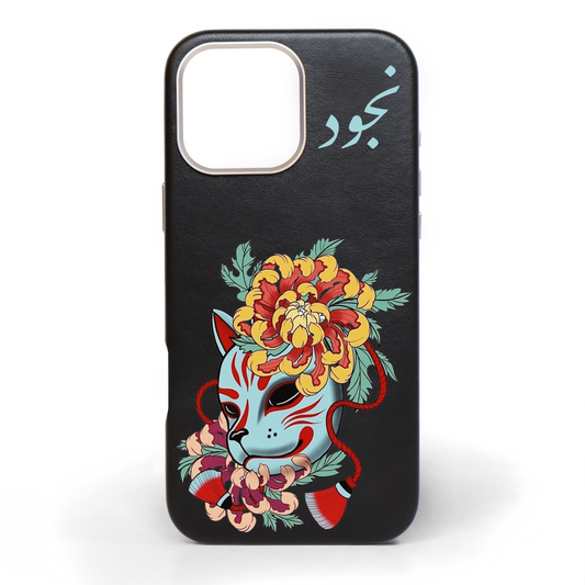 Kitsune Bloom Hand-Painted Leather Phone Case